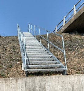 | Varmförzinkad trappa med gallerdurkssteg, i Malmö |